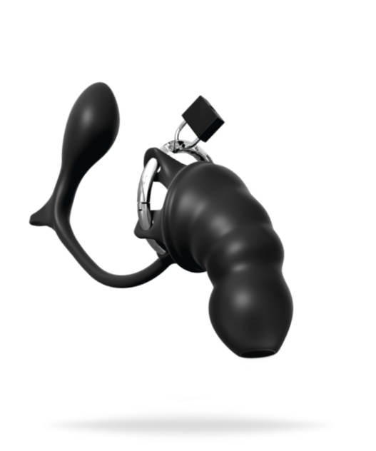Förstärk njutningen med denna Cock cage with butt plug - en produkt som tar slavens kyskhet till nya höjder! Den har en justerbar kukring som garanterar en säker passform vid alla tillfällen och buren passar perfekt för alla penisstorlekar upp till ca 13 cm. Samtidigt ger buttplugen en subtil stimulans. En viktig detalj är det medföljande hänglåset som kan låsas säkert med de 2 nycklarna. För nybörjare ingår även 3 engångslås. Med en urineringsöppning blir långtidsanvändning bekvämare.