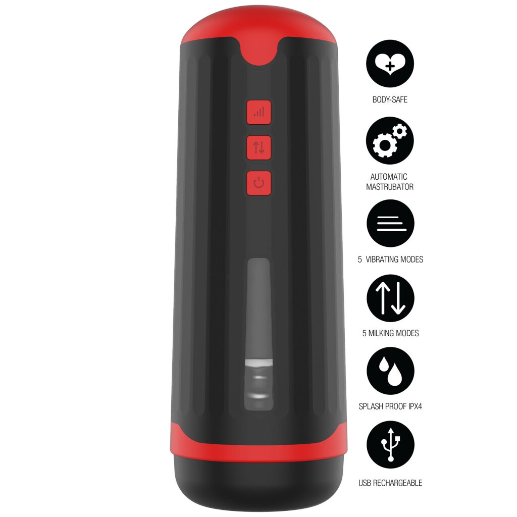 Den unika kombinationen av vibrerande och mjölkande rörelser i Milking Master Masturbator är designad för att simulera ett intensivt och naturligt sug. Med fem olika mjölklägen och fem kraftfulla vibrationsinställningar får du total kontroll över din njutning – eller så kan du bara luta dig tillbaka och låta den ta över showen.