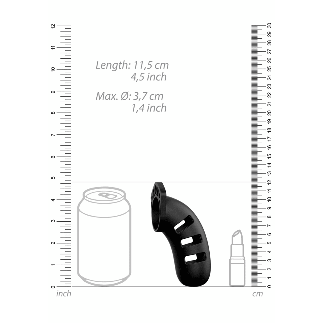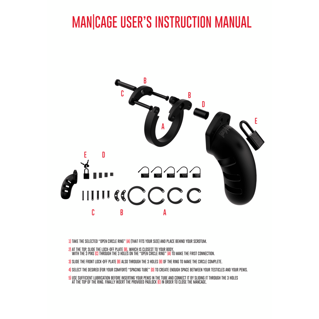 Med fem olika ringstorlekar och distanser kan Mancage anpassas för en säker och bekväm passform. De medföljande plastlåsen är perfekta för situationer där diskretion är ett måste, som vid säkerhetskontroller, medan det robusta metalllåset ger en autentisk BDSM-känsla. När tiden är inne för frigörelse kan plastlåsen enkelt klippas av.