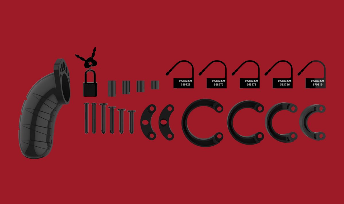 ManCage 04 Chastity Cage är en högkvalitativ kukbur tillverkad av lättviktsmaterial av högsta kvalitet polykarbonat, som är allergivänligt och mycket hållbart. Buren består av tre delar designade för att skapa en perfekt passform. Två styrstift förbinder övre delen och ett ovalt koniskt stift förbinder ringarna med buren. Buren levereras med olika storlekar på ringar och distansdelar för att hitta den optimala passformen. ManCage 04 Chastity Cage är bekväm och säker i användning med sin robusta design. Med ett metall- eller ett tietrack-lås blir buren helt kroppssäker och inbrottssäker. Tietrack-låsen är diskreta och säkerställer att de inte utlöser larmet från metalldetektorer på festivaler eller flygplatser - vilket gör att du tryggt och säkert kan hänge dig vart som helst.