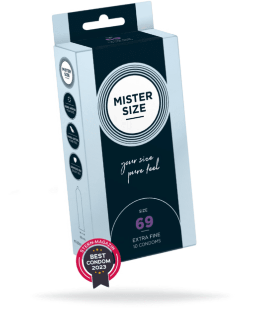 Denna kondomen från Mister Size är gjord på vegansk latex och är förberedd med glidmedel och är väldigt tunn.
