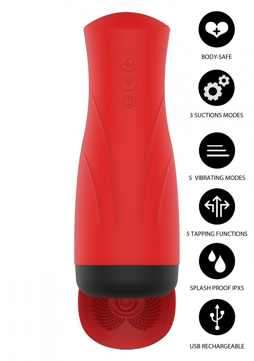 Du får inte mindre än fem olika vibrationslägen, fem tappningsrytmer och tre nivåer av sug – allt kontrollerat med intuitiva knappar. Oavsett om du gillar mjuk och retande stimulans eller vill gå direkt på hård och intensiv action, så finns det en kombination som passar dig. Fyra kraftfulla motorer jobbar tillsammans för att ge dig en explosiv, omslutande känsla – gång på gång.