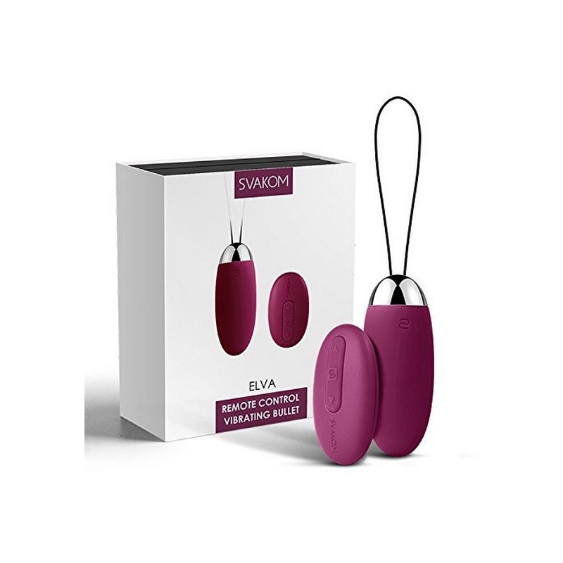 Smörj in ditt vibroägg med vattenbaserat glidmedel, låt den glida in i dig och njut exakt vart du vill. Den silkeslena ytan är mjuk som sammet mot huden, tack vare det högkvalitativa och kroppssäkra silikon-materialet. Ägget är helt vattentätt, så du kan utan problem använda den i duschen, badet eller på stranden. Med den medföljande fjärrkontrollen styr du eller din partner bekvämt de fem olika tystgående vibrationshastigheterna i fem intenisteter. Svakom Elva erbjudet också Svakom Intelligent Mode, som imiterar vibrationerna av ett samlag ända till en häpnadsväckande orgasm. Du behöver inte oroa dig för att inte få ut vibratorn när du fört in den i vaginan tack vare snöret som sitter fast på leksaken. Vibratorn laddas smidigt upp med USB-kabeln du får med, och fjärrkontrollen drivs av ett CR2032 batteri, som även det medföljer. Leksakens totala längd inklusive snöret är 17,6 cm, själva vibratorn har en längd på 8 cm, och en diameter på 3,2 cm.