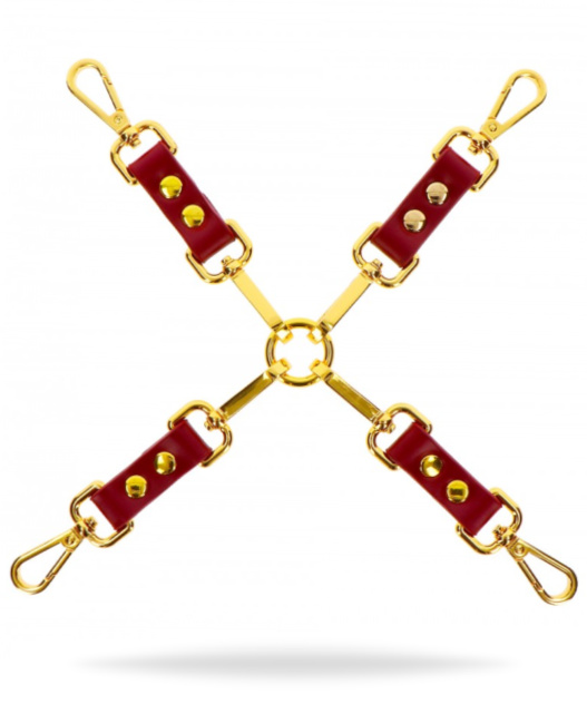 Detta BDSM-tillbehör i rött slitstarkt PU-läder gör det enkelt att binda någon i en hogtie. Fäst handklovar och handbojor på Taboom Hogtie eller trä ett bondage rep genom de guldiga ringarna för att binda din partner i en hogtie! Gör BDSM enklare, bekvämare och lyxigare med Taboom!